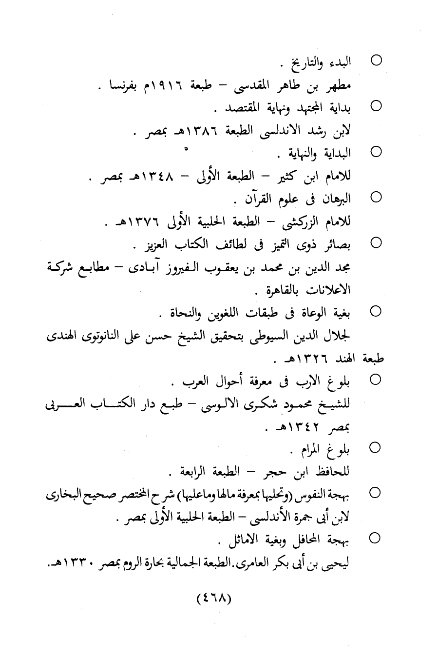 ° بداية المجتهد ونهاية المقتصد. لابن رشد الاندلسى الطبعة 1386 هـ بمصر.