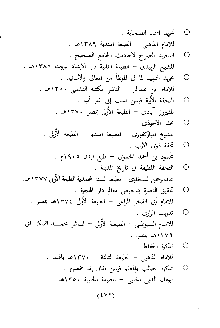 ° تجريد اسماء الصحابة. للامام الذهبى - الطبعة الهندية 1389 هـ.