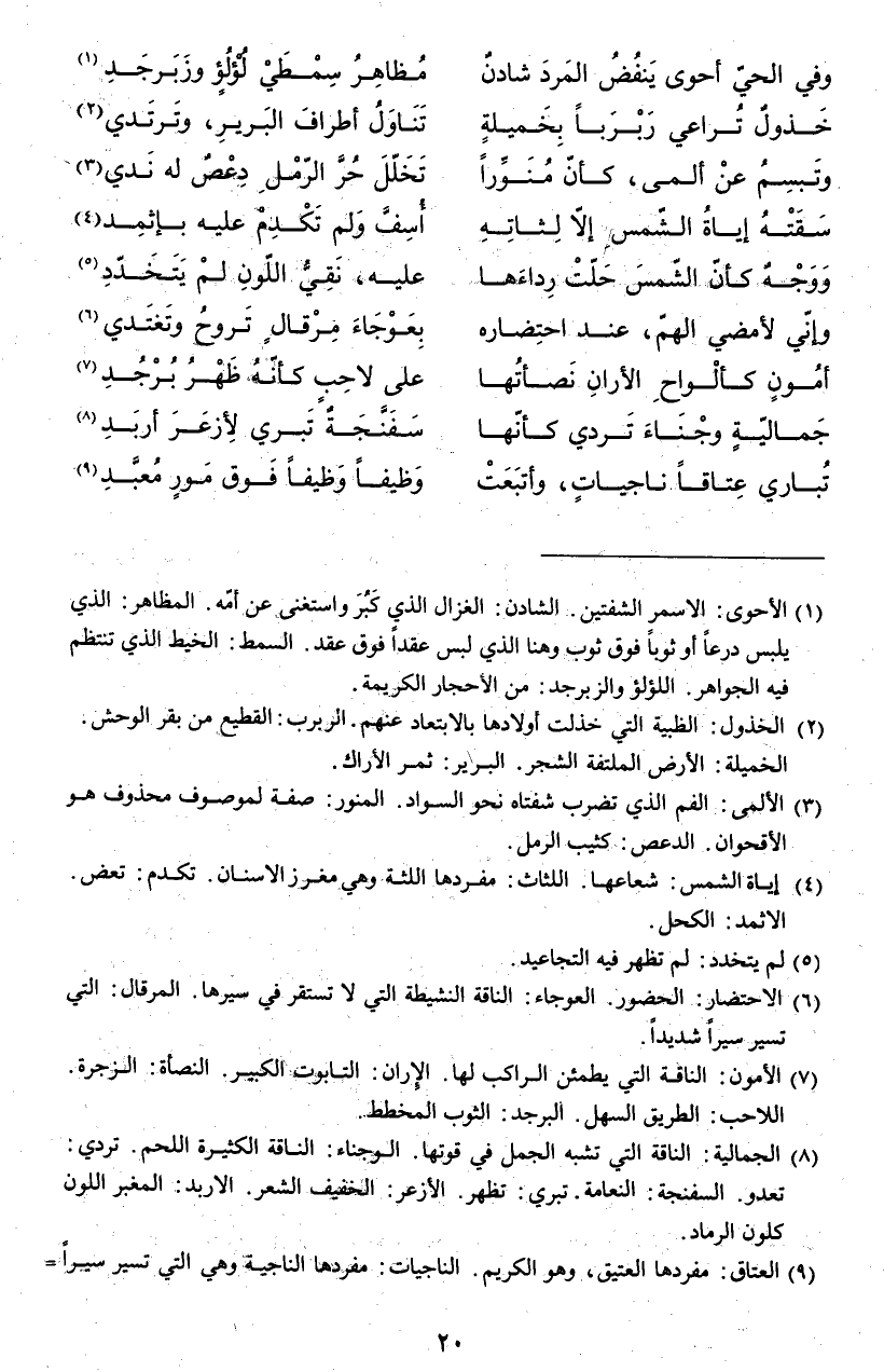 (¬4) الصهابية: التي يميل لونها إلى الإحمرار. العثنون: شعرات تحت لحيها الأسفل. الموجدة: القوية. القرا: الظهر. الوخد: السير السريع. الموّارة: السريعة.