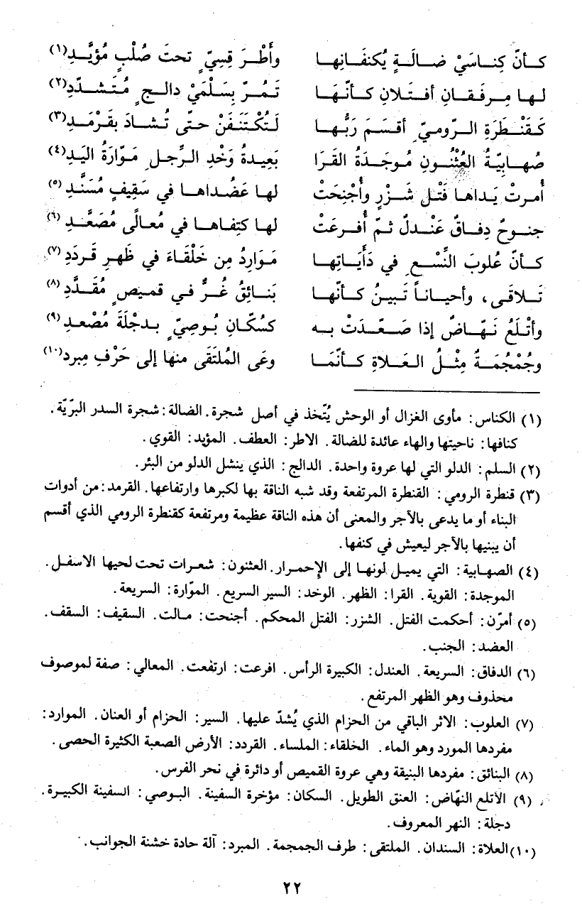 (¬3) أحلت: أقبلت. القطيع: السوط. أجذمت: أسرعت في سيرها. الخب: سير الإبل. الآل: السراب ساعة الضحى. الأمعز: المكان الكثير الحصى. المتوقد: الذي سطع نور الشمس عليه.