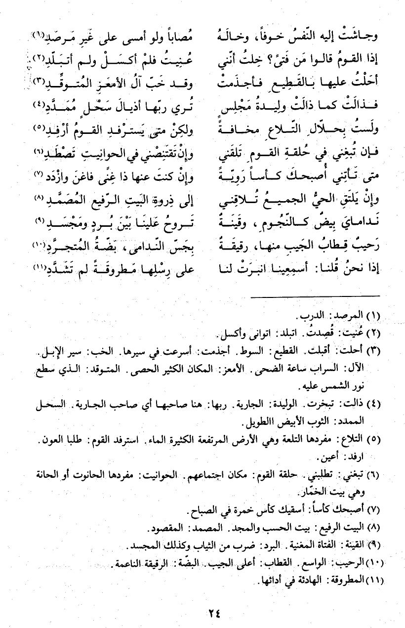 على غير ذنبٍ قلتهُ، غيرَ أنّني ... نَشَدْتُ فلم أُغْفِلْ حَمُولة َ مَعبَدِ (¬11)
