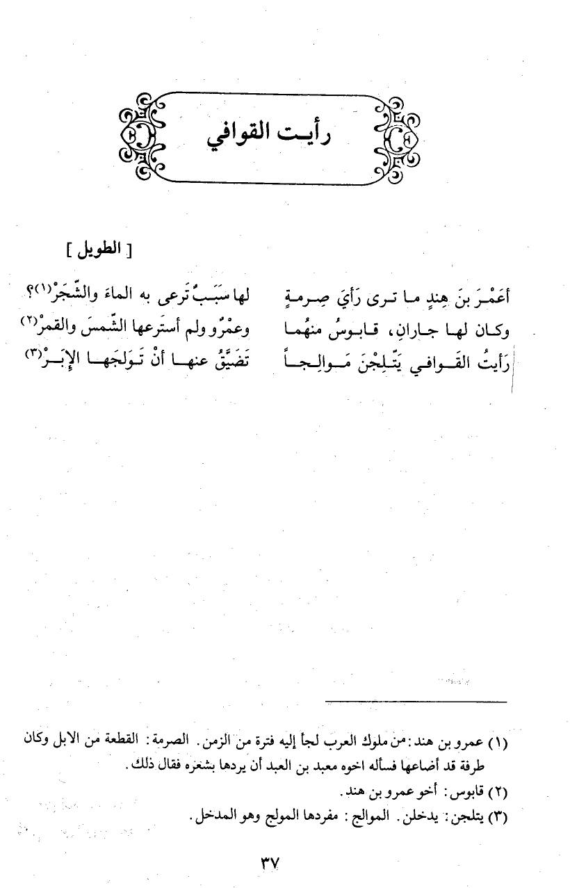 (¬7) تخلس الطرف: تسرق النظرات. البرغز: الجؤذر أو ابن البقر الوحشية. وفي القول كناية عن اتساع عيني هذه المرأة. الرشا: الغزال الذي يتغني عن أمه. الأدم: الأبيض. الغر: الحديث السن.