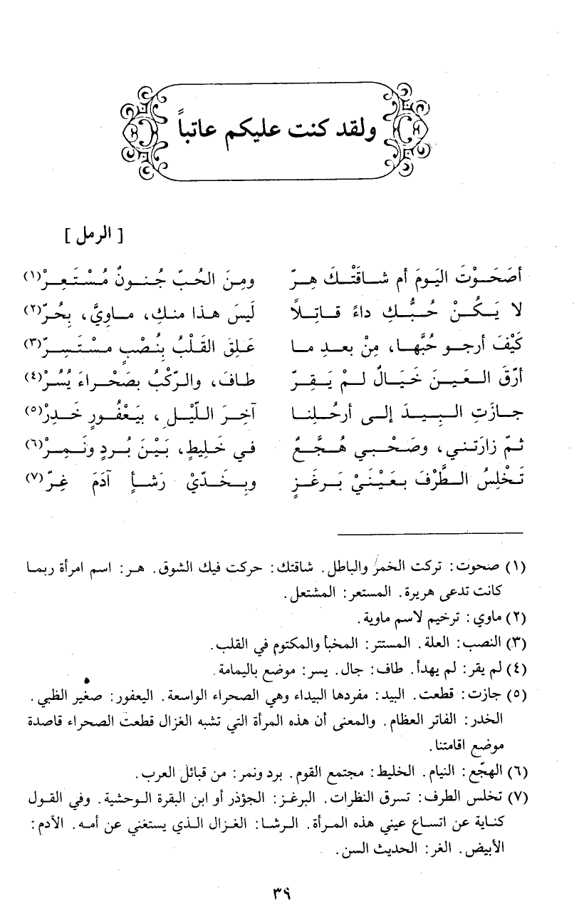 (¬7) رقد الصيف: كناية عن النعيم والرفاهية التي كان يعيش بها. المقاليت: مفردها المقلاة وهي المرأة التي لا يعش لها ولد. النزر: الواحد نزور وهي القليلة الأولاد.