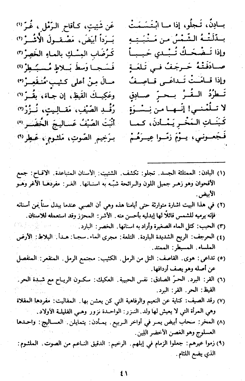 (¬8) المشتاة: أوقات الشتاء. الجفلى: الذي يدعون كل الناس إلى الطعام دون تسمية. الآدب: الذي يخص في دعوته إلى الطعام. ينتقر: يتذمر.
