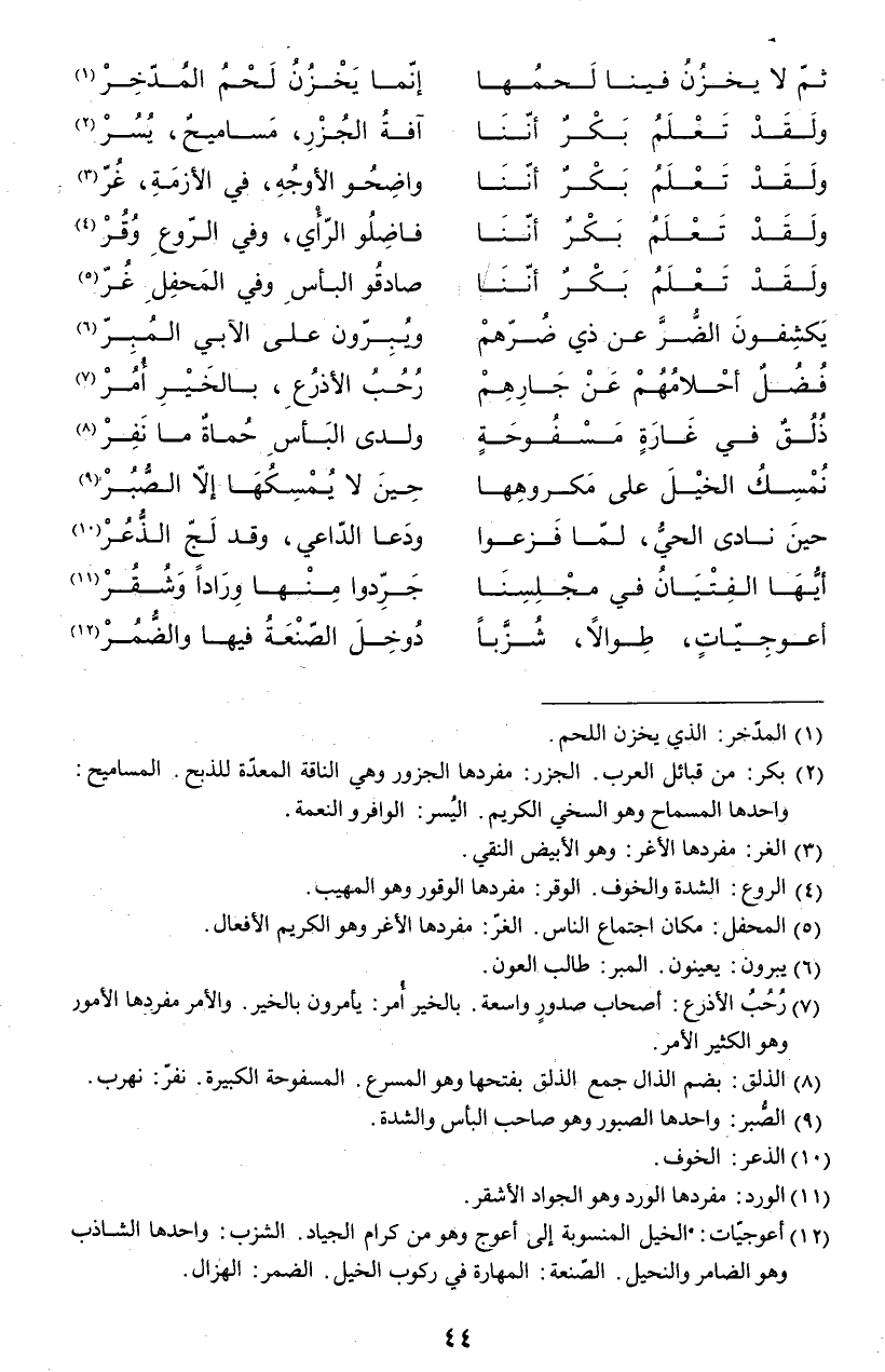 (¬4) السادر: العابث الذي لا يهتم لما يعمل. الغي: الجهل والضلالة. صابت بِقُرّ: من أمثال العرب يضرب غب موضع تناهي الأمر في الشدة.