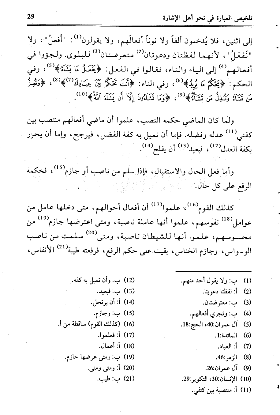 ولما كان الماضي حكمه النصب، علموا أن ماضي أفعالهم منتصب بين كفتي عدله وفضله. فإما أن تميل به كفة الفضل، فيرجح، وإما أن يحرر بكفة العدل، فبعيد أن يفلح. وأما فعل الحال والاستقبال، فإذا سلم من ناصب أو جازم، فحكمه الرفع على كل حال.