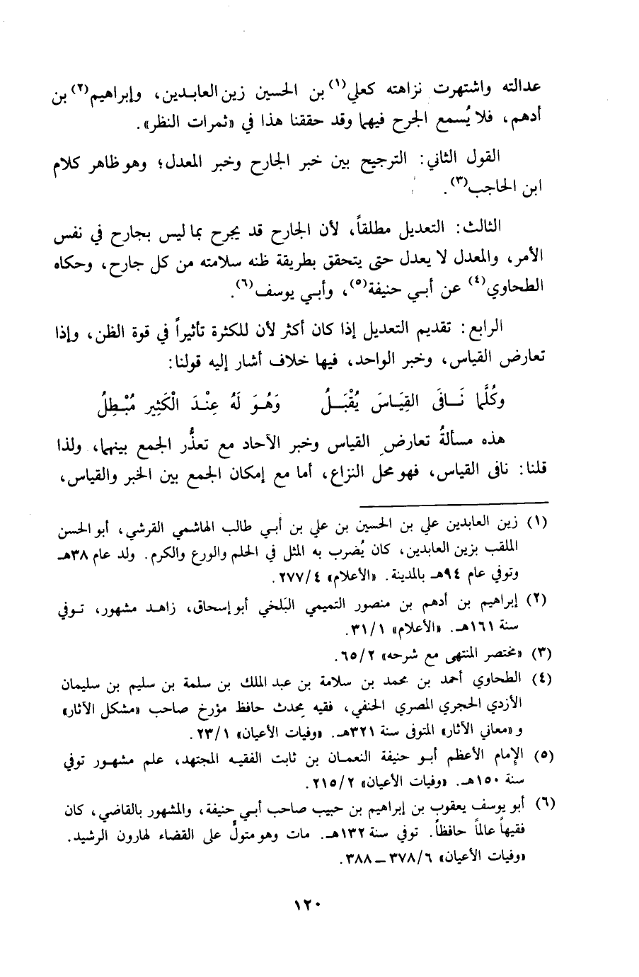 الرَّابِع تَقْدِيم التَّعْدِيل إِذا كَانَ أَكثر لِأَن لِكَثْرَة تَأْثِيرا فِي قُوَّة الظَّن وَإِذا تعَارض الْقيَاس وَخبر الْوَاحِد فِيهَا خلاف أَشَارَ إِلَيْهِ قَوْلنَا ... وَكلما نافى الْقيَاس يقبل ... وَهُوَ لَهُ عِنْد الْكثير مُبْطل ...