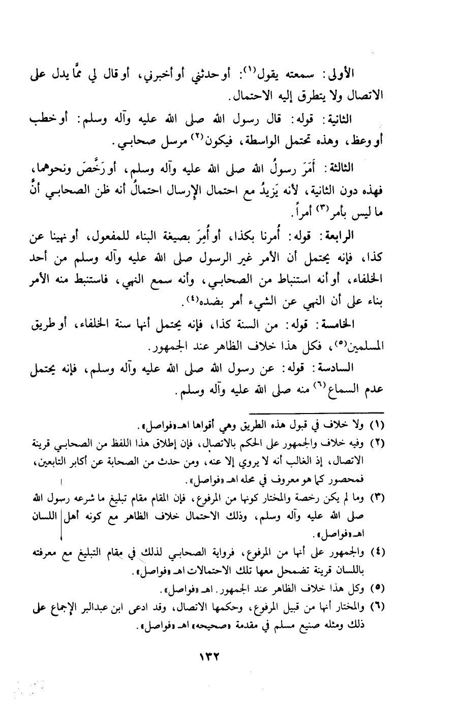 الأولى سمعته يَقُول أَو حَدثنِي أَو أَخْبرنِي أَو قَالَ لي مِمَّا يدل على الِاتِّصَال وَلَا يتَطَرَّق إِلَيْهِ الِاحْتِمَال