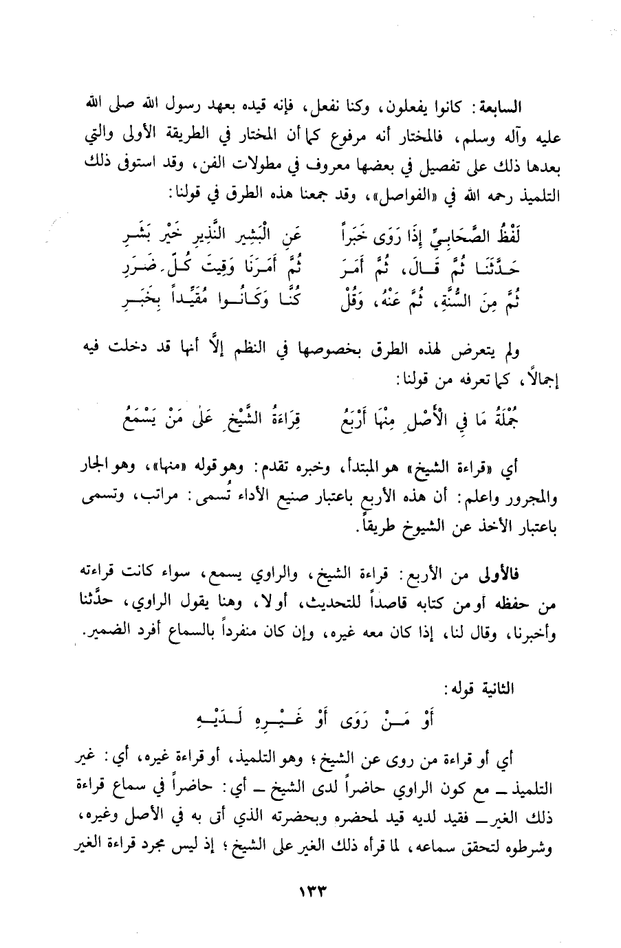 السَّابِعَة كَانُوا يَفْعَلُونَ وَكُنَّا نَفْعل فَإِنَّهُ قَيده بِعَهْد رَسُول الله صلى الله عَلَيْهِ وَسلم فالمختار أَنه مَرْفُوع كَمَا أَن الْمُخْتَار فِي الطَّرِيقَة الأولى وَالَّتِي بعْدهَا ذَلِك على تَفْصِيل فِي بعضهما مَعْرُوف فِي مطولات الْفَنّ وَقد استوفى ذَلِك التلميذ رَحمَه الله فِي الفواصل وَقد جَمعنَا هَذِه الطّرق فِي قَوْلنَا