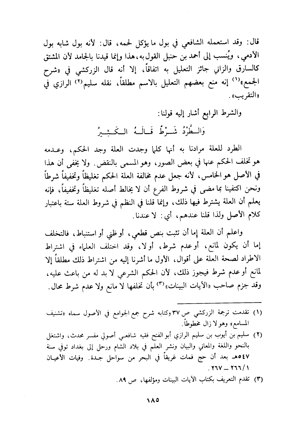 وَالشّرط الرَّابِع أَشَارَ إِلَيْهِ قَوْلنَا ... والطرد شَرط قَالَه الْكثير ...
