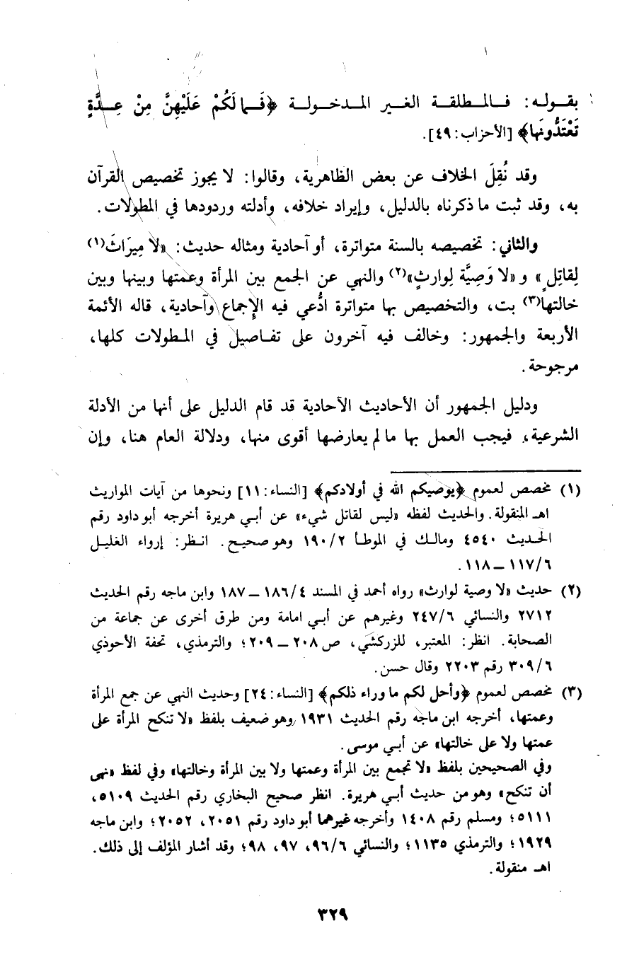 وَقد نقل الْخلاف عَن بعض الظَّاهِرِيَّة وَقَالُوا لايجوز تَخْصِيص الْقُرْآن بِهِ وَقد ثَبت مَا ذَكرْنَاهُ بِالدَّلِيلِ وإيراد خِلَافه وأدلته وردودها فِي المطولات