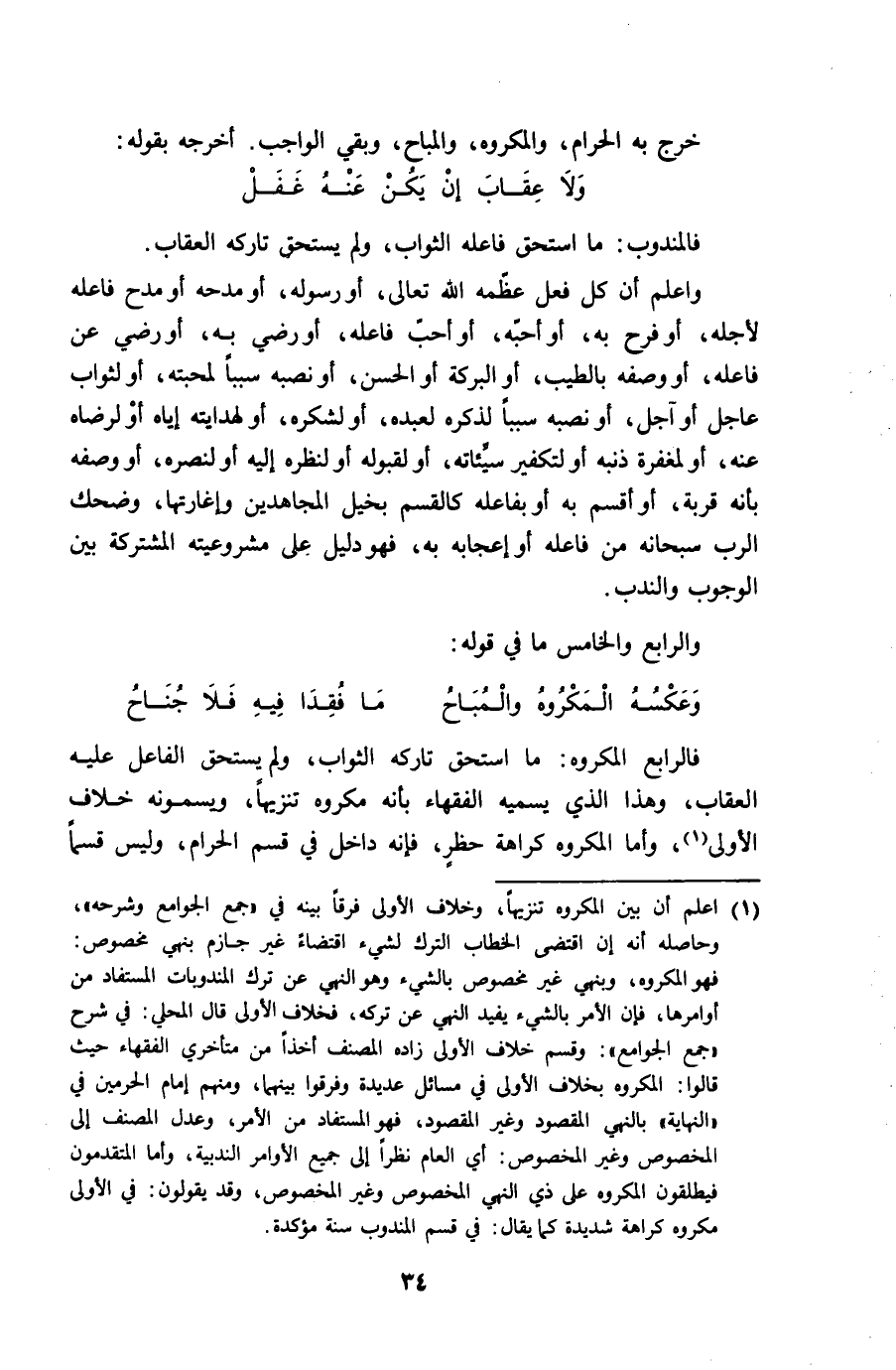 وَالرَّابِع وَالْخَامِس مَا فِي قَوْله ... وَعَكسه الْمَكْرُوه والمباح ... مَا فقدا فِيهِ فَلَا جنَاح ...
