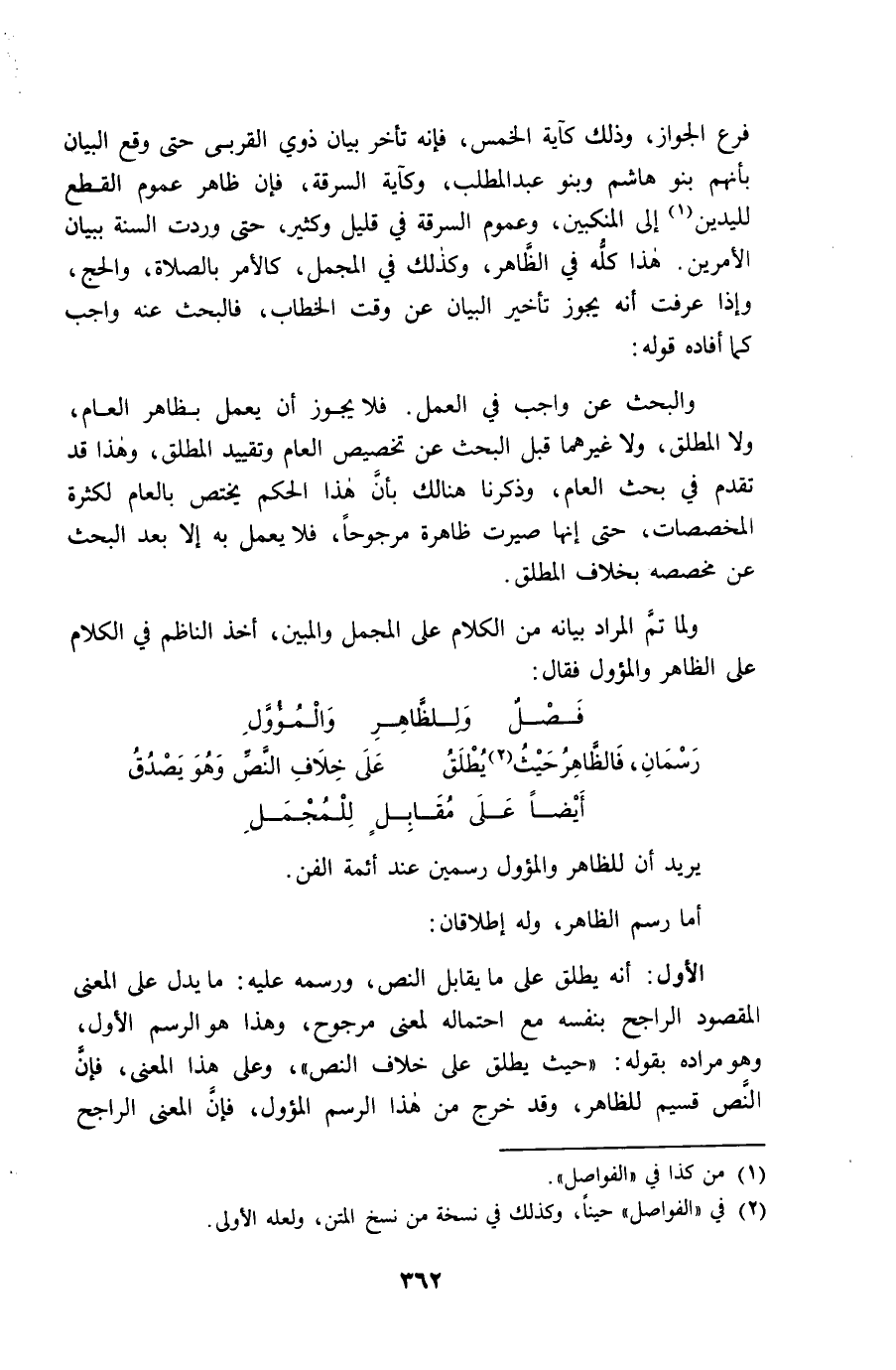فصل وللظاهر والمؤول ... رسمان فَالظَّاهِر حَيْثُ يُطلق