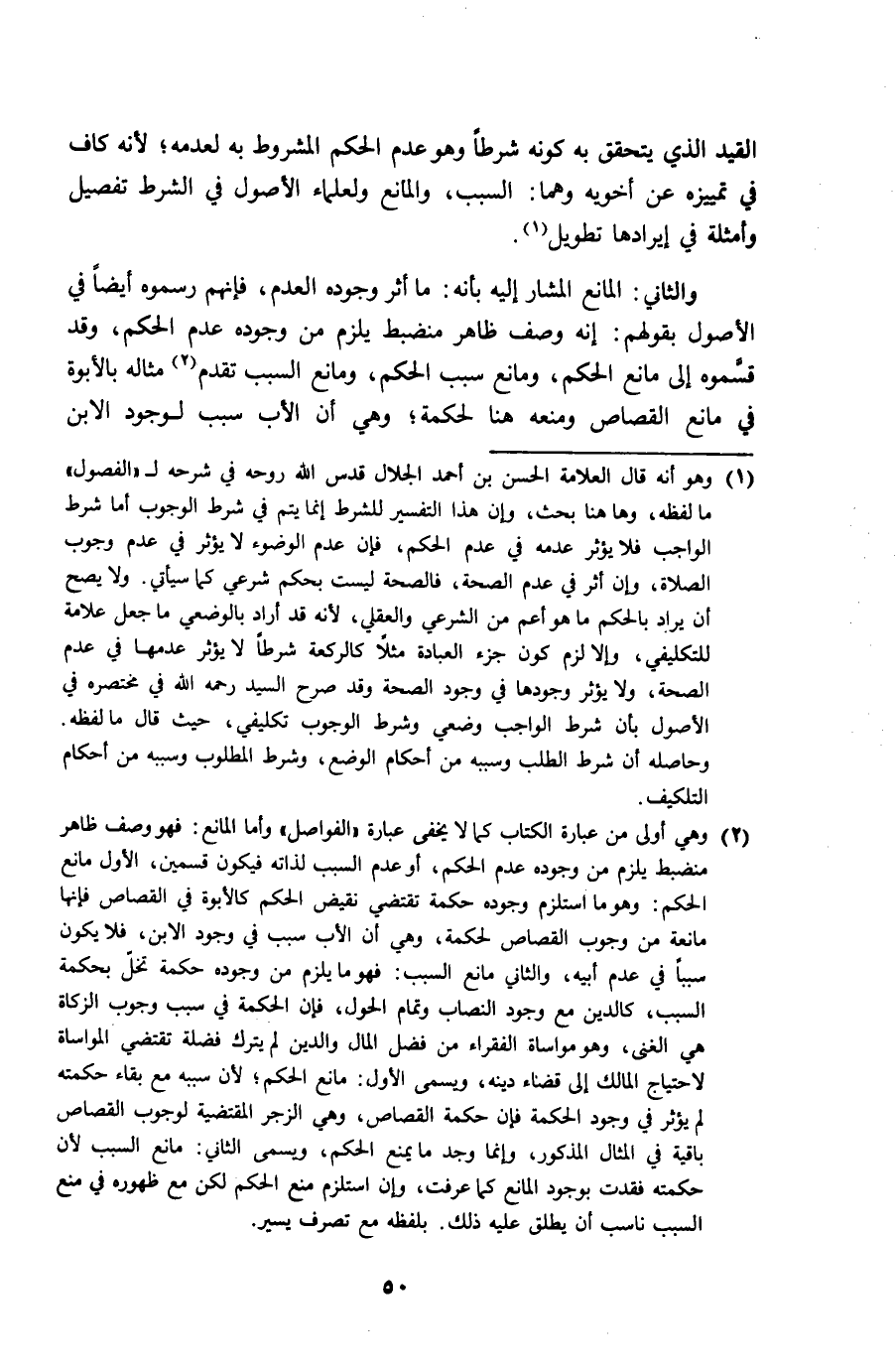 وَالثَّانِي الْمَانِع الْمشَار إِلَيْهِ بِأَنَّهُ مَا أثر وجوده الْعَدَم فَإِنَّهُم رسموه أَيْضا فِي الْأُصُول بقَوْلهمْ إِنَّه وصف ظَاهر منضبط يلْزم من وجوده عدم الحكم وَقد قسموه إِلَى مَانع الحكم ومانع سَبَب الحكم ومانع السَّبَب تقدم مِثَاله بالأبوة فِي مَانع الْقصاص وَمنعه هُنَا لحكمة وَهِي أَن الْأَب سَبَب لوُجُود الابْن