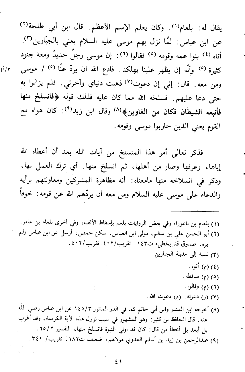 (¬1) بلعام بن باعوراء وفي بعض الروايات بلعم بإسقاط الألف، وفي أخرى بلعام ابن عامر. ينظر: الطبري ((التفسير)) (13/ 257) والحاكم في ((المستدرك)) (2/325)