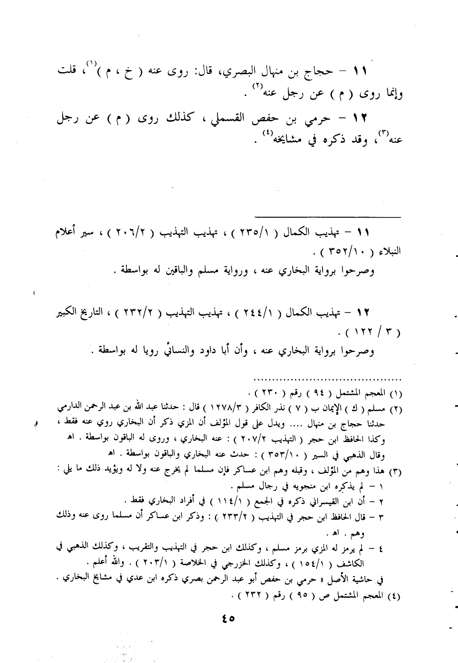 12 - حَرَمِيُّ بْنُ حفص القسملي كذلك روى (م) عَنْ رَجُلٍ عَنْهُ وَقَدْ ذَكَرَهُ في مشايخه