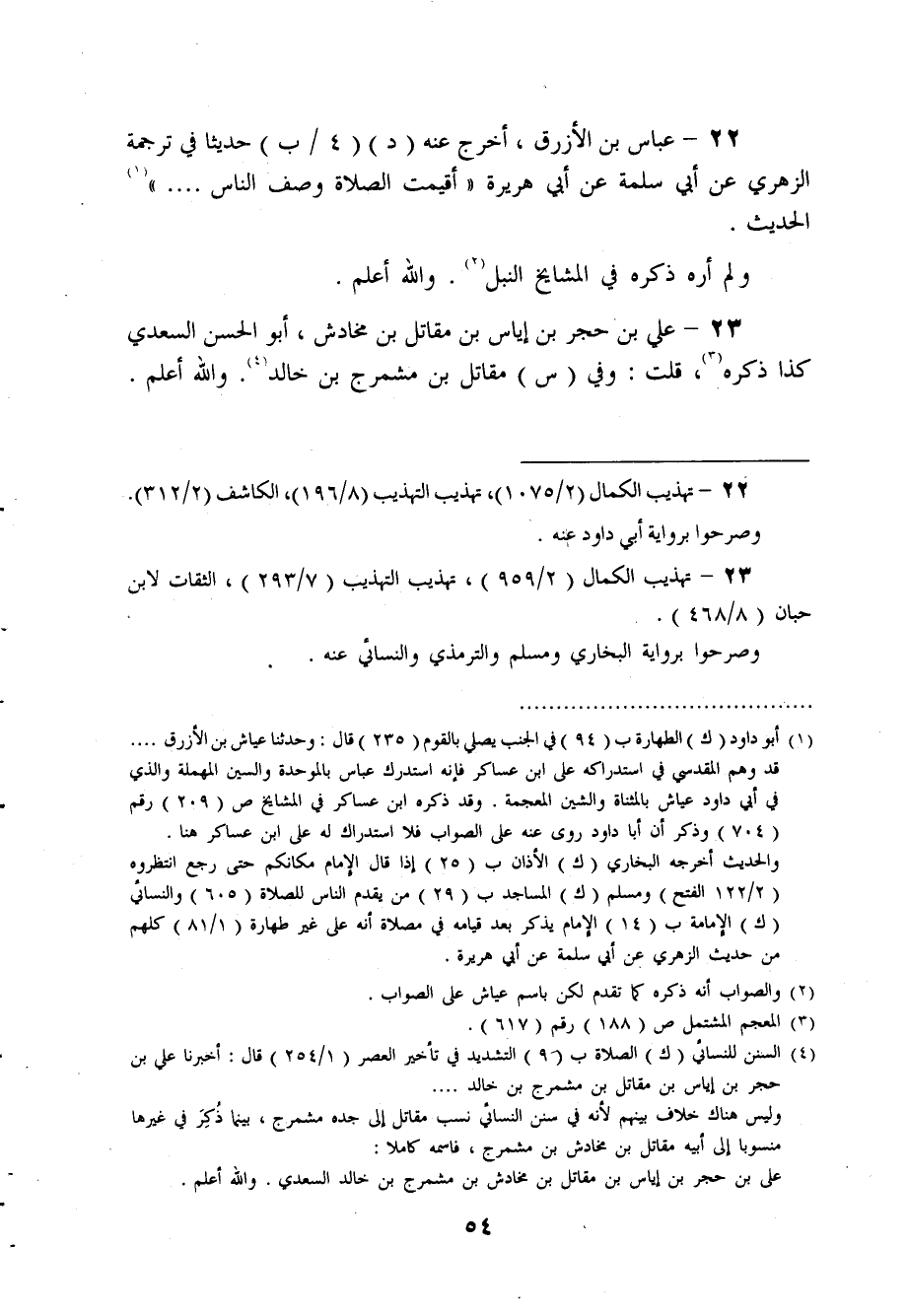 22 - عَبَّاسُ بْنُ الْأَزْرَقِ أَخْرَجَ عَنْهُ (د) (4 / ب) حَدِيثًا فِي تَرْجَمَةِ الزُّهْرِيِّ عَنْ أَبِي سَلَمَةَ عَنْ أَبِي هُرَيْرَةَ أُقِيمَتِ الصَّلَاةُ وَصَفَّ النَّاسُ ... الْحَدِيثَ