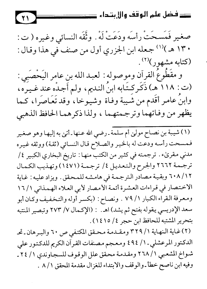 صغير فمسحت رأسه ودعت له. وثقه النسائي وغيره (ت: 130هـ) (¬1) جعله ابن الجزري أول من صنف في هذا وقال: (كتابه مشهور) (¬2).