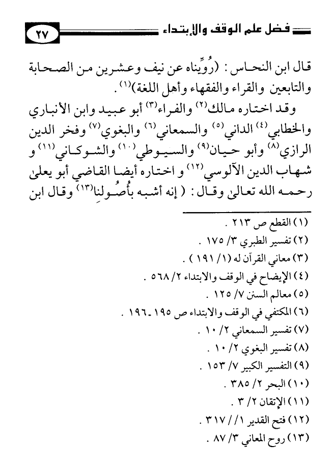 كتاب فضل علم الوقف والابتداء وحكم الوقف على رؤوس الآيات