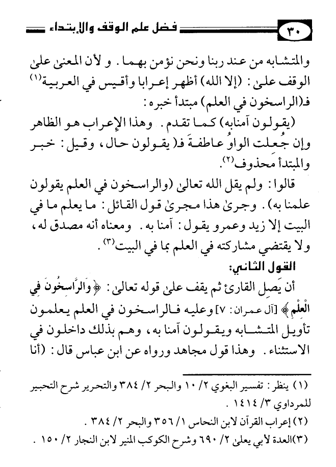 كتاب فضل علم الوقف والابتداء وحكم الوقف على رؤوس الآيات