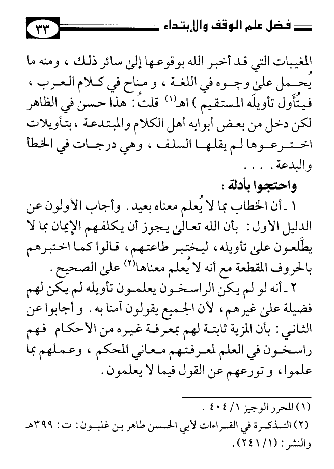 كتاب فضل علم الوقف والابتداء وحكم الوقف على رؤوس الآيات