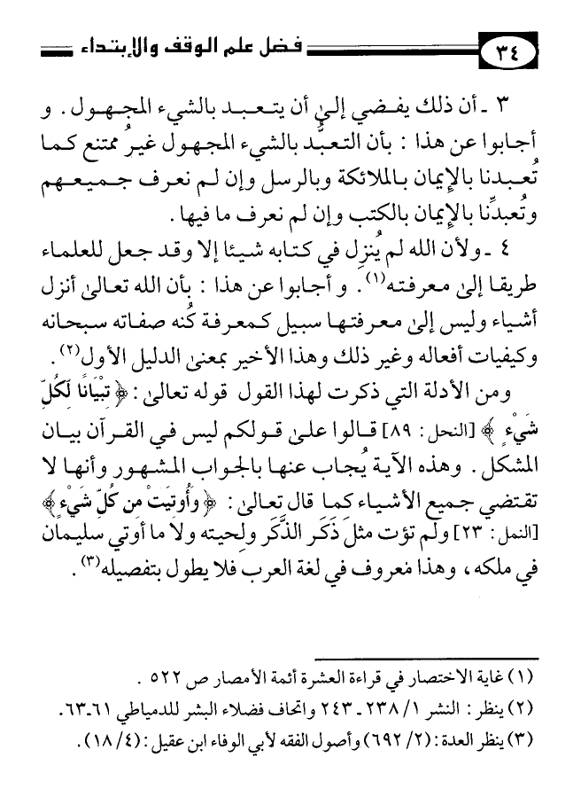 كتاب فضل علم الوقف والابتداء وحكم الوقف على رؤوس الآيات
