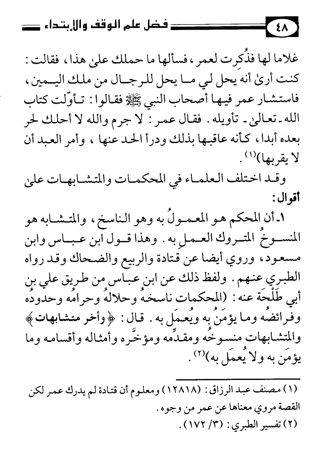 كتاب فضل علم الوقف والابتداء وحكم الوقف على رؤوس الآيات