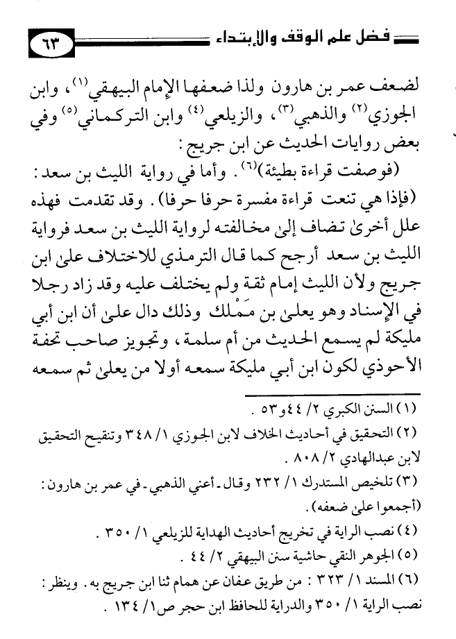 لضعف عمر بن هارون، ولذا ضعفها الإمام البيهقي (¬1)، وابن الجوزي (¬2)، والذهبي (¬3)، والزيلعي (¬4)، وابن التركماني (¬5)، وفي بعض روايات الحديث عن ابن جريج: