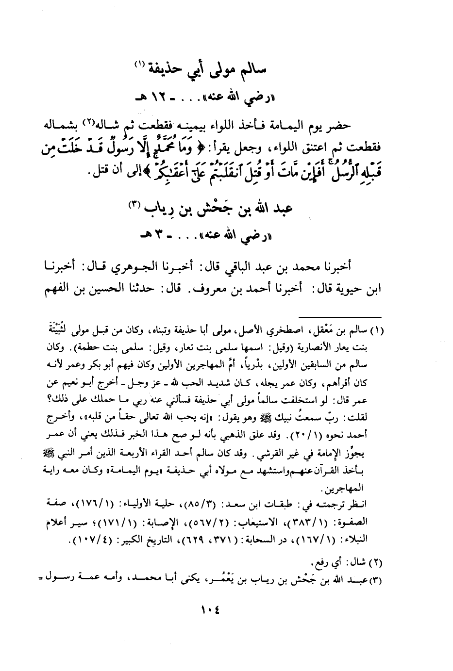 سَالِمٌ مَوْلَى أَبِي حُذَيْفَةَ رَضِيَ اللَّهُ عَنْهُ 12 هـ
