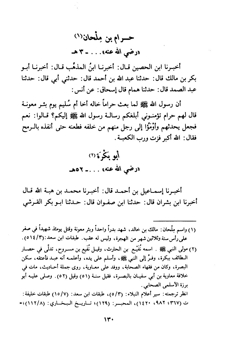حَرَامُ بْنُ مِلْحَانَ رَضِيَ اللَّهُ عَنْهُ 3 هـ