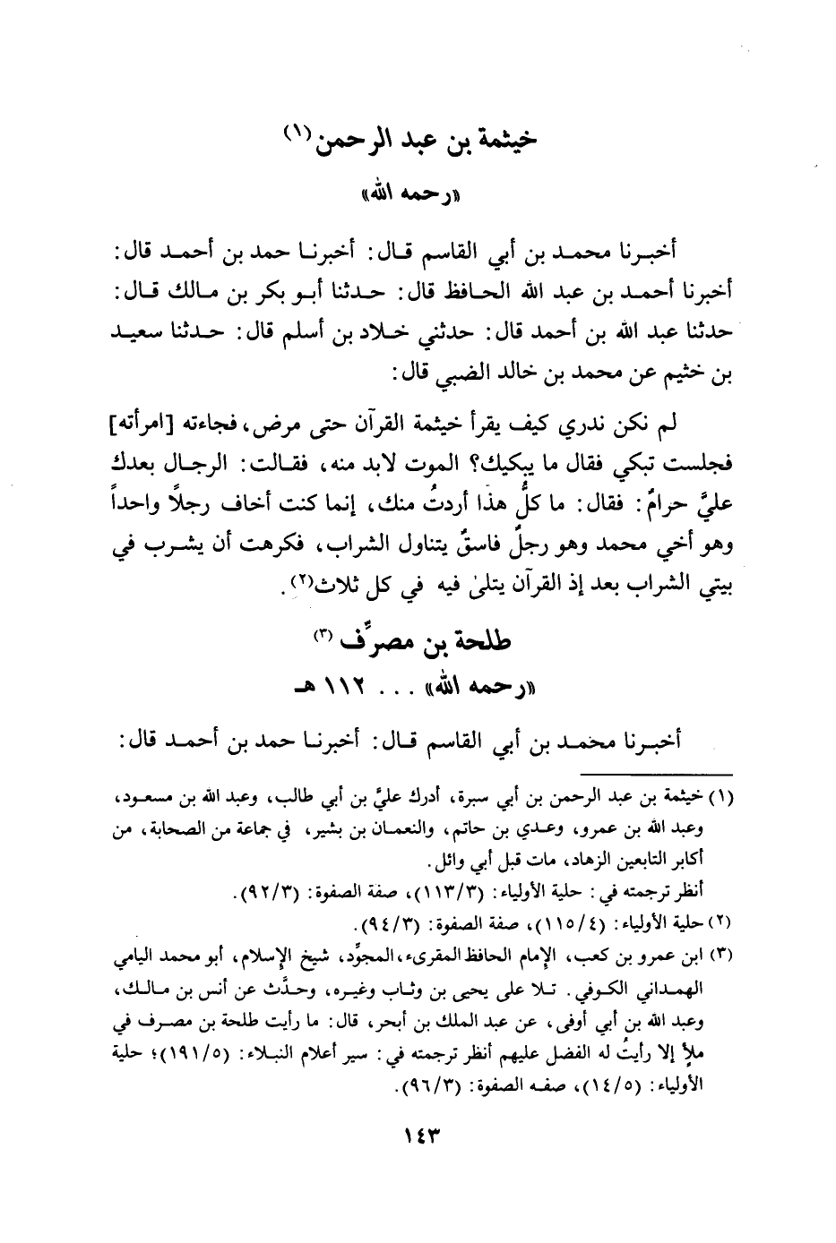 خَيْثَمَة بن عبد الرحمن رَحِمَهُ اللَّهُ