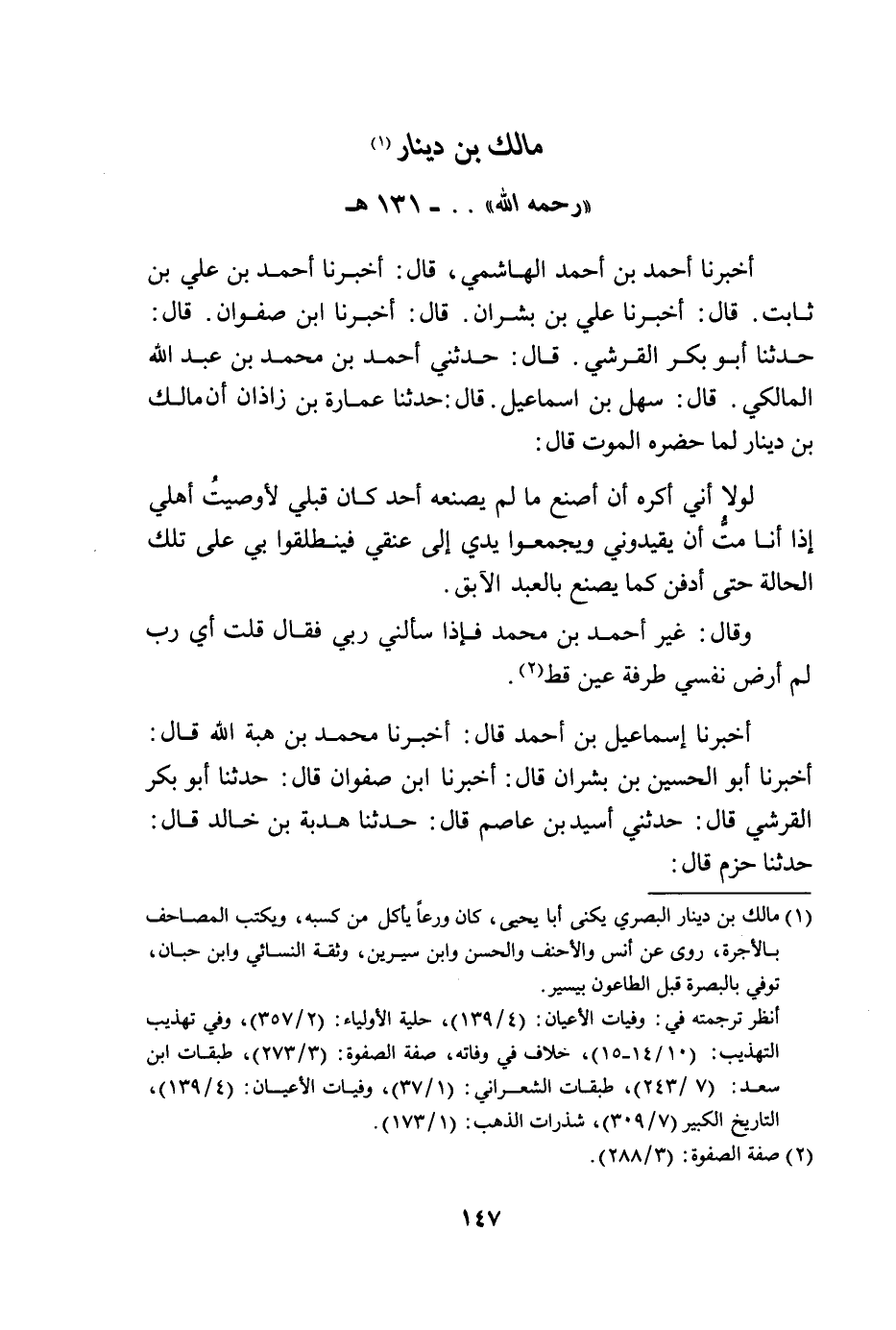 مَالِكُ بْنُ دِينَارٍ رَحِمَهُ اللَّهُ 131 هـ