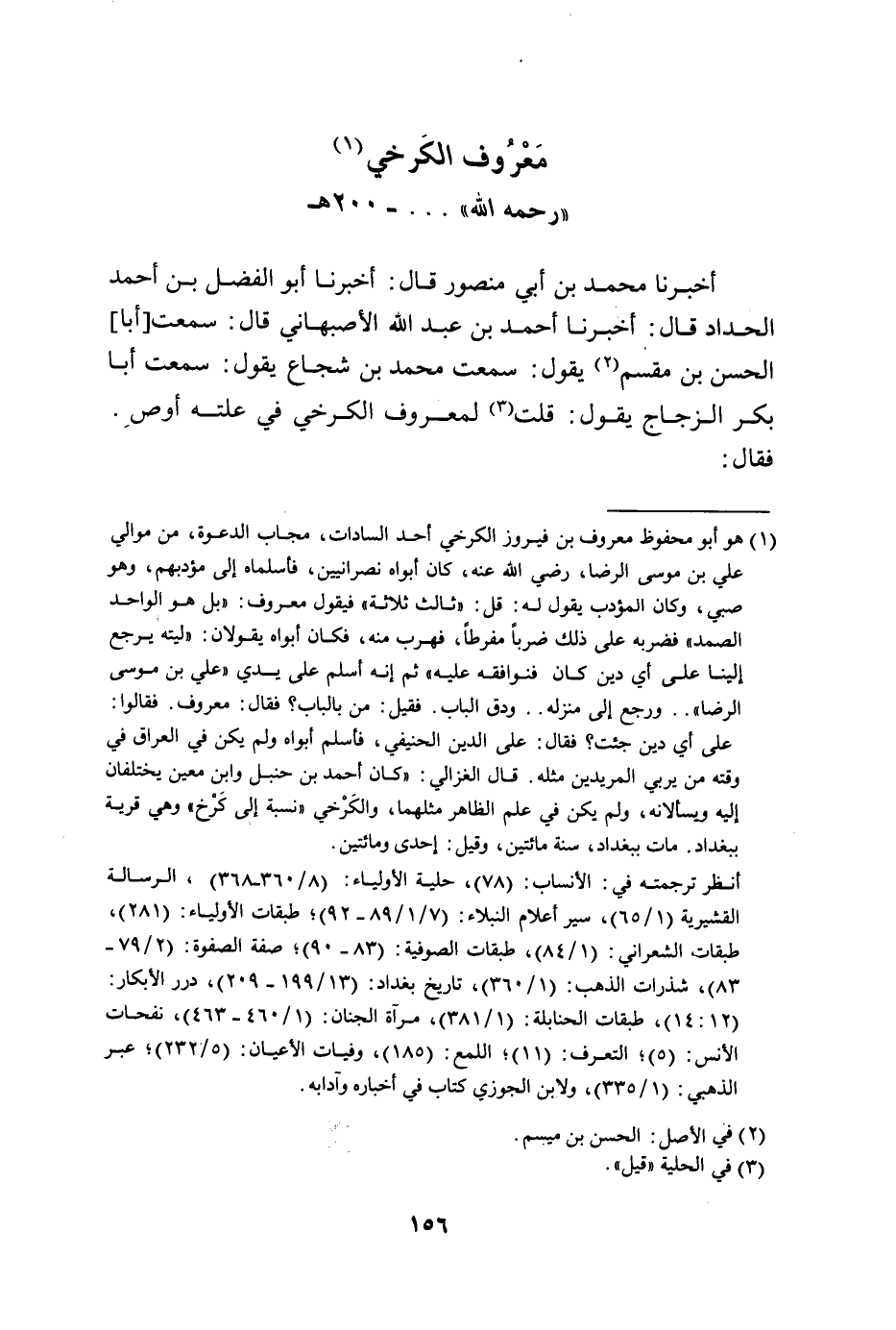 مَعْرُوفٌ الْكَرْخِيُّ رَحِمَهُ اللَّهُ 200 هـ