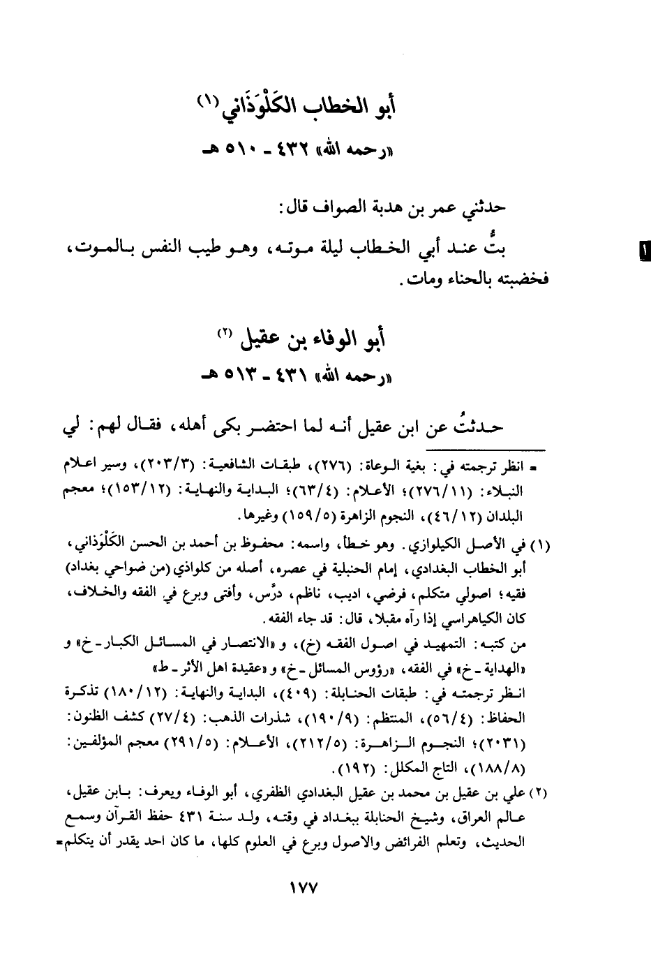 أَبُو الْوَفَاءِ بْنُ عَقِيلٍ رَحِمَهُ اللَّهُ 431 513 هـ