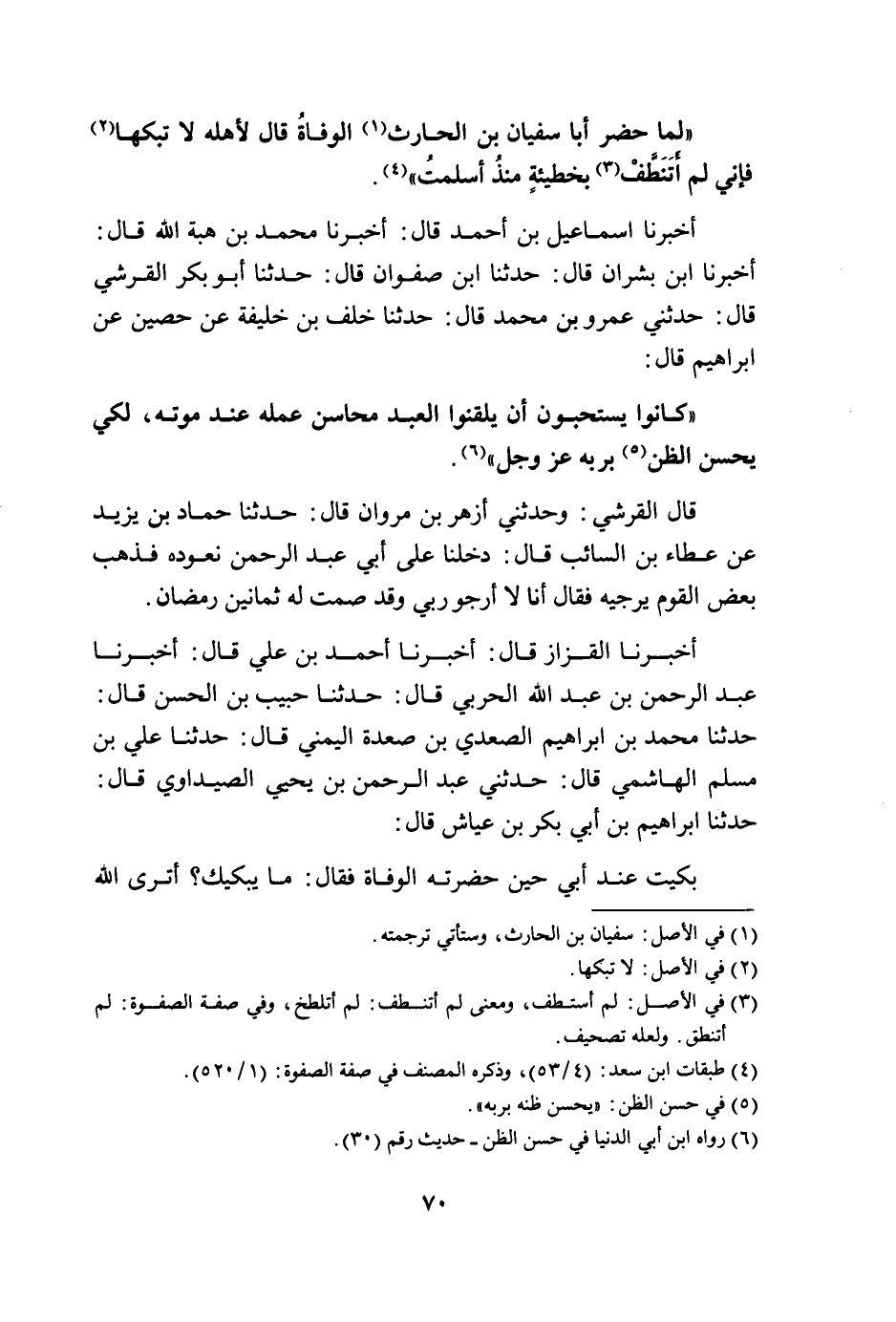 كَانُوا يَسْتَحِبُّونَ أَنْ يُلَقِّنُوا الْعَبْدَ مَحَاسِنَ عَمَلِهِ عِنْدَ مَوْتِهِ لِكَيْ يُحْسِنَ الظَّنَّ بِرَبِّهِ عَزَّ وَجَلَّ