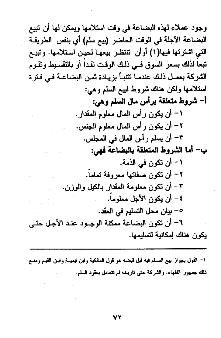 (¬1) القول بجواز بيع المسلم فيه قبل قبضه هو قول المالكية وابن تيمية وابن القيم ومنع ذلك جمهور الفقهاء. والشركة حتى تاريخه لم تتعامل بعقود السلم.