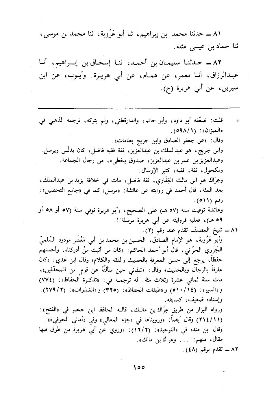 82 - حَدَّثَنَا سُلَيْمَانُ بْنُ أَحْمَدَ، ثَنَا إِسْحَاقُ بْنُ إِبْرَاهِيمَ، أنا عَبْدُ الرَّزَّاقِ، أنا مَعْمَرٌ، عَنْ هَمَّامٍ، عَنْ أَبِي هُرَيْرَةَ، وَأَيُّوبَ، عَنِ ابْنِ سِيرِينَ، عَنْ أَبِي هُرَيْرَةَ، (ح)
