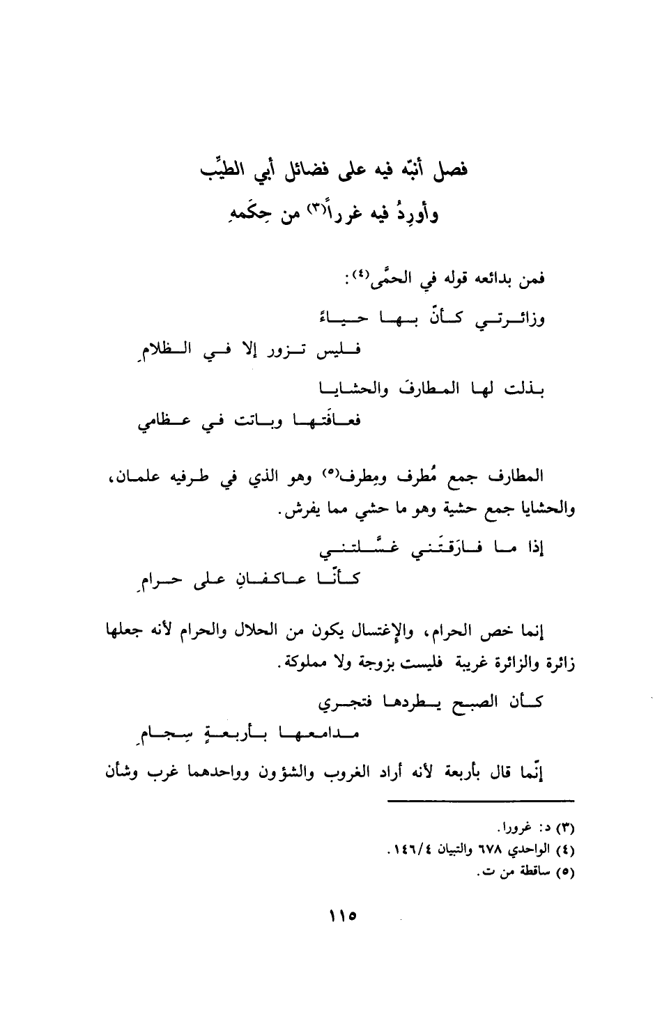 فصل أنبّه فيه على فضائل أبي الطيِّب وأورد فيه غرراً من حكمه