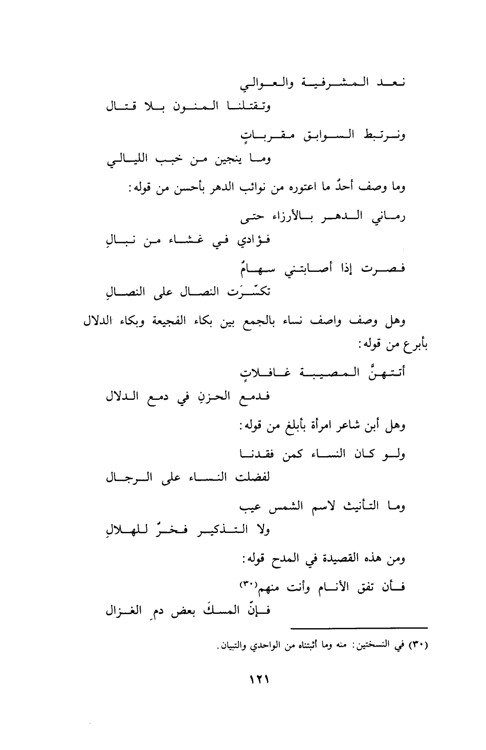 ولو كان النساء كمن فقدنا ... لفضلت النساء على الرجال