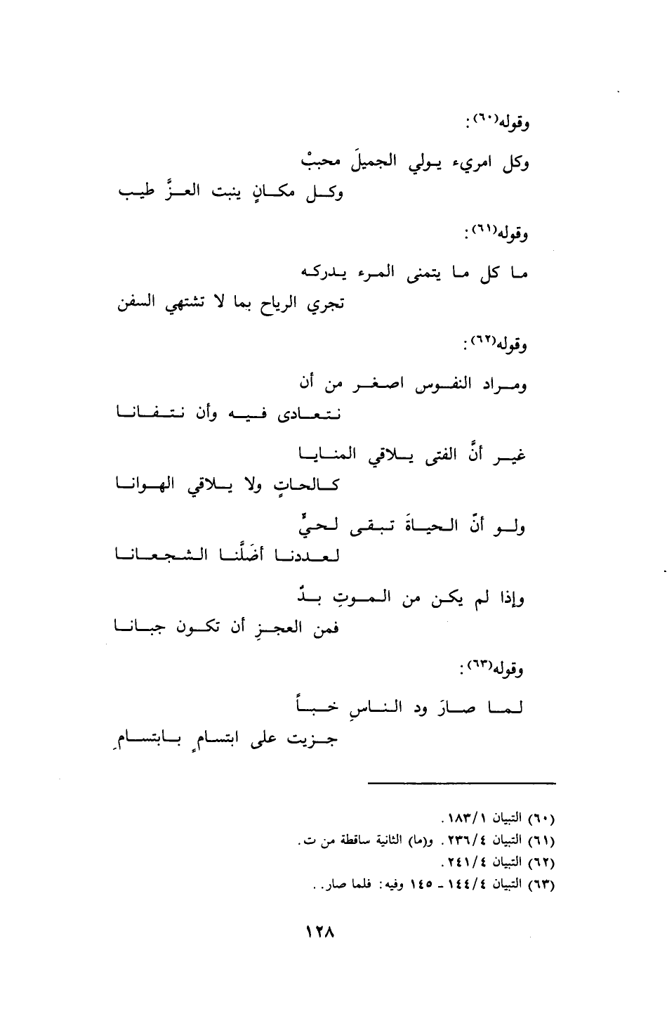 وكل امرئ يولي الجميلَ محببْ ... وكل مكانٍ ينبت العزَّ طيب