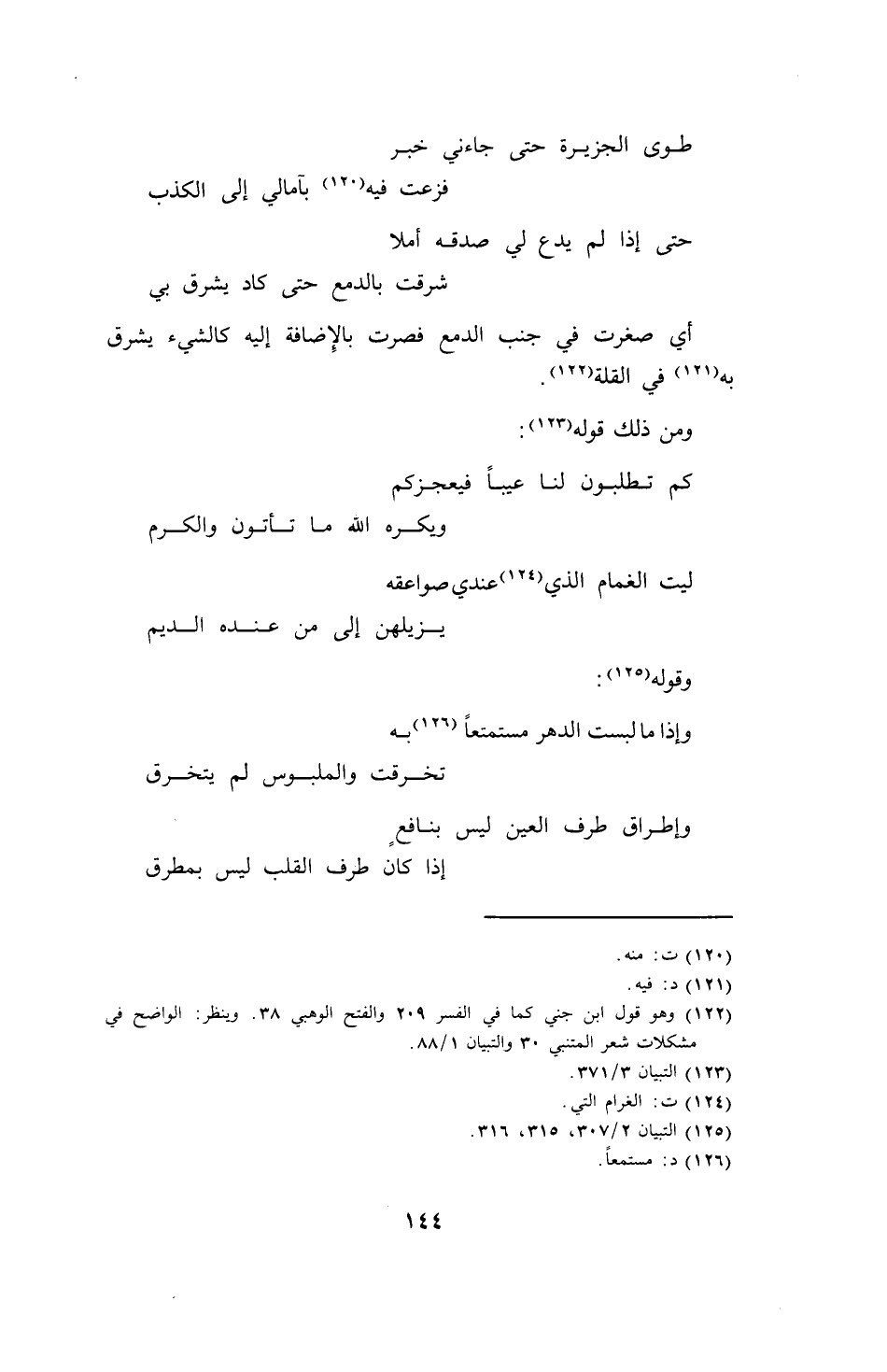 طوى الجزيرة حتى جاءني خبر ... فزعت فيه بآمالي إلى الكذب