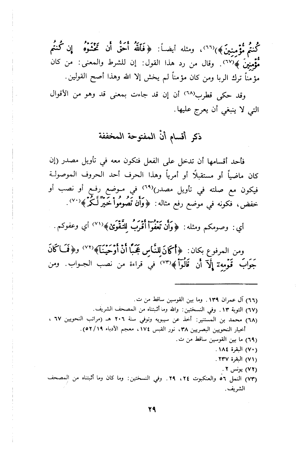 كنتمْ مؤمنينَ))، ومثله أيضاً: (فاللهُ أحقُّ أن تخشوهُ إن كنتم مؤمنينَ). وقال من رد هذا لقول: إن للشرط والمعنى: من كان مؤمناً ترك الربا ومن كان مؤمنا لم يخش إلا الله وهذا أصح القولين.