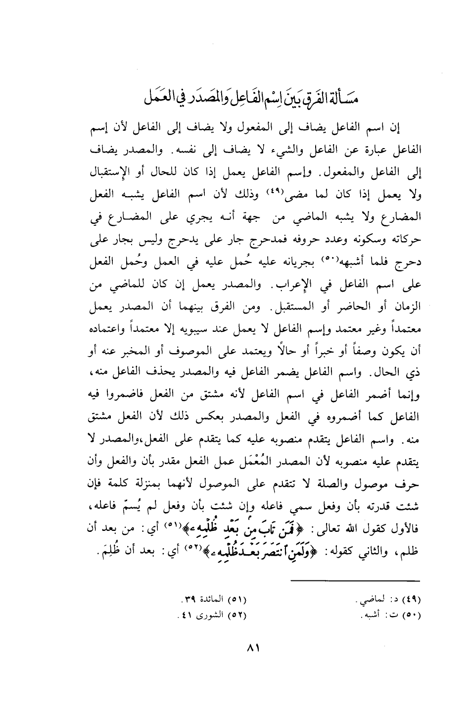 مسألة الفرق بين اسم الفاعل والمصدر في العمل