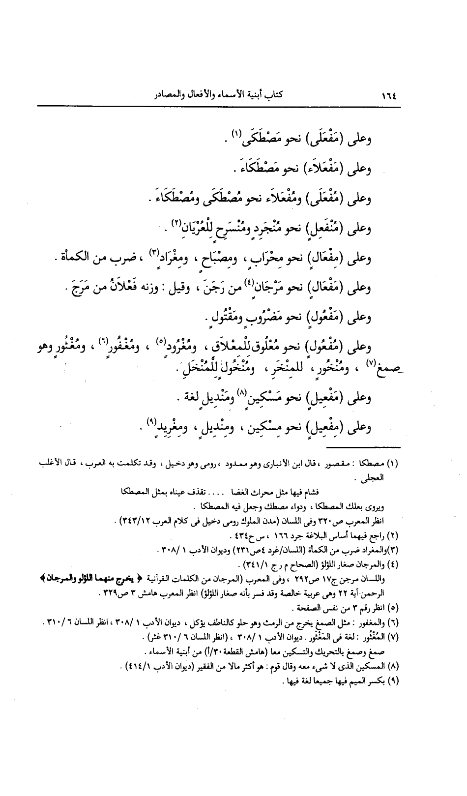 وعلى (مِفعال) نحو محراب، ومصباح، ومغراد، ضرب من الكمأة.