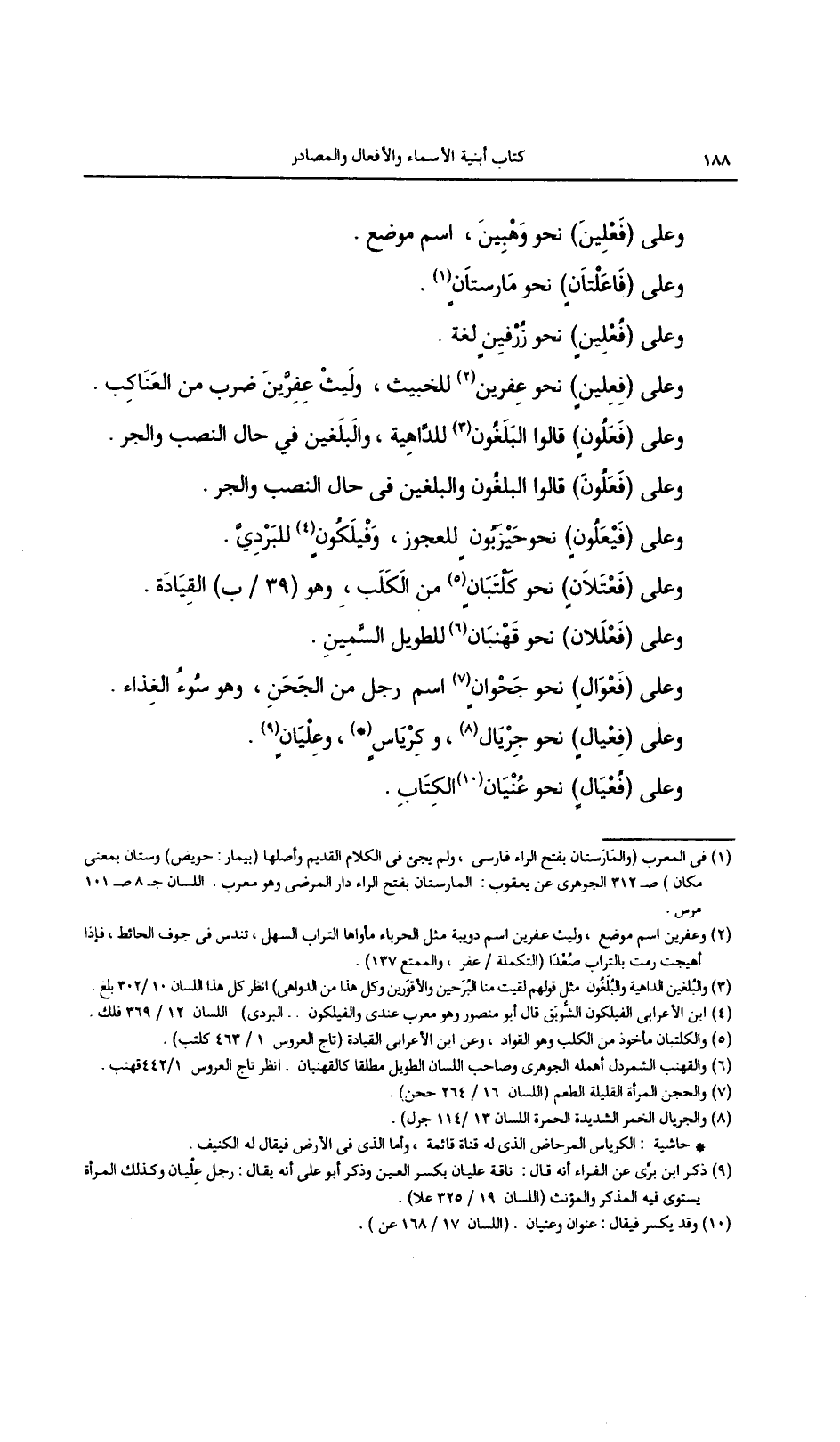 وعلى (فعلين) نحو وهبين، اسم موضع.