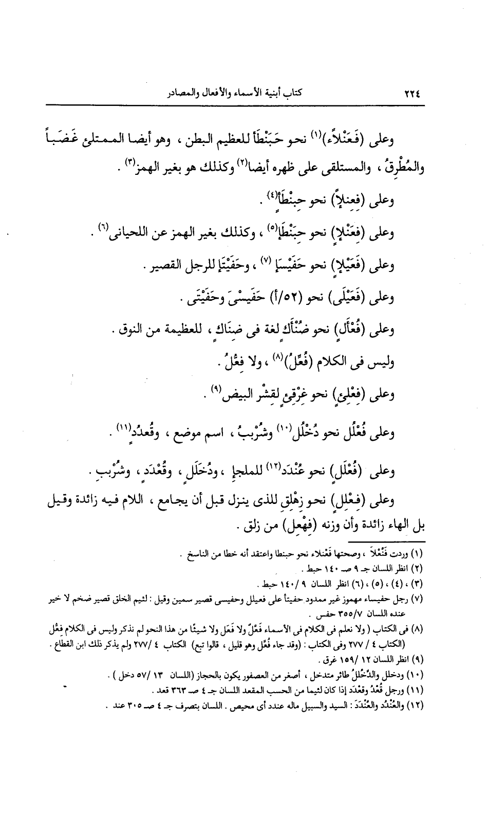وعلى (فعنلإ) نحو حبنطأ, وكذلك بغير الهمز عن اللحيانى.