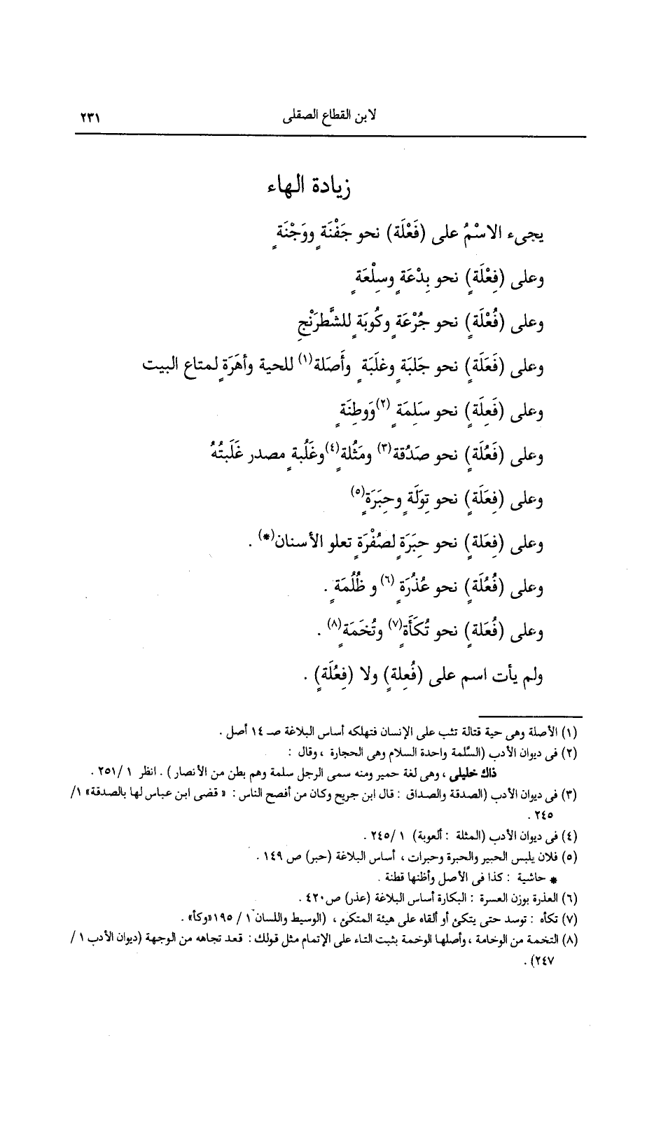 وعلى (فعلة) نحو جلبة وغلبة وأصله للحية وأهرة لمتاع البيت.