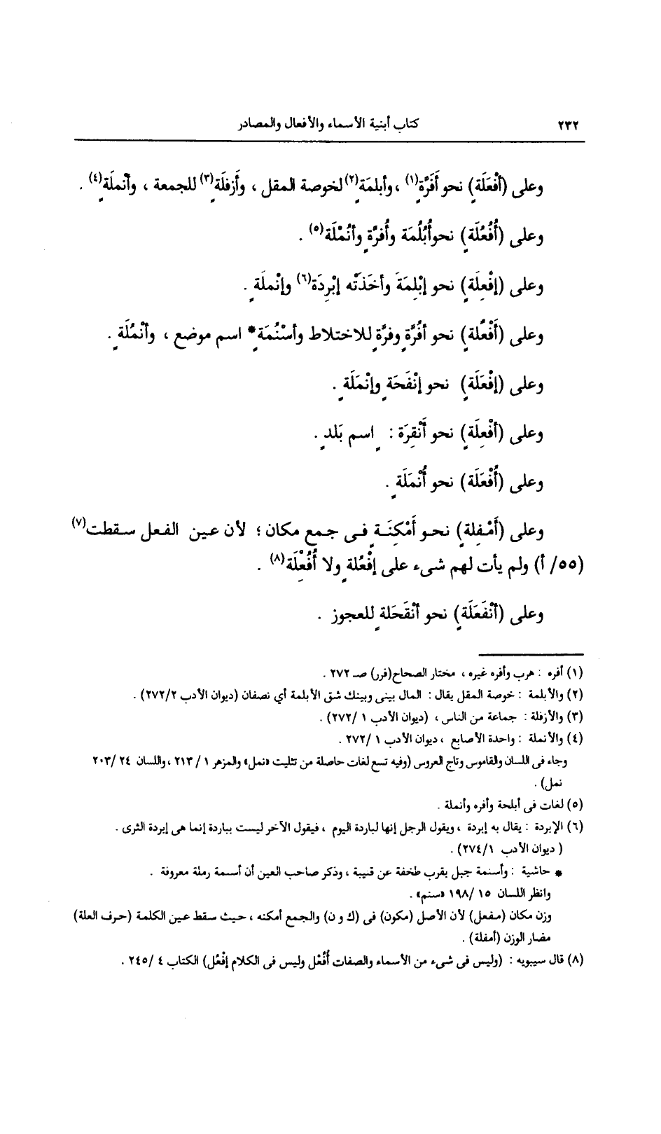 وعلى (أفعلة) نحو أبلمة وأفرة وأنملة.