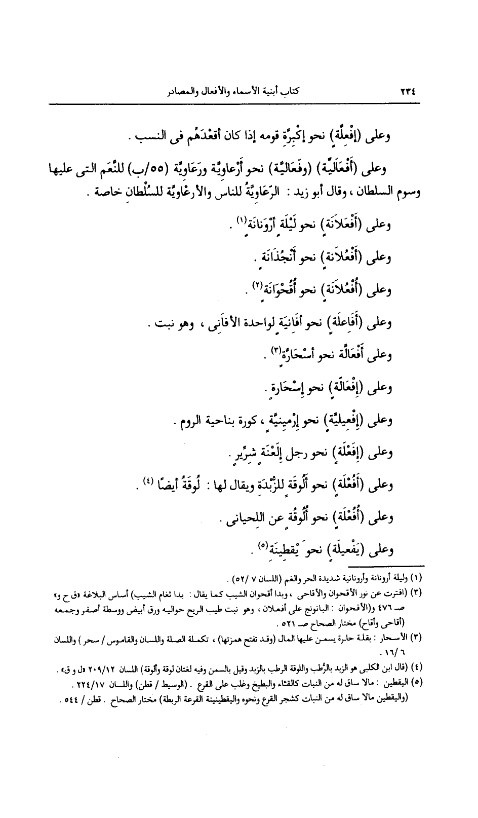 وعلى (أفعالية) و (فعالية) نحو أرعاوية ورعاوية (55/ب) للنعم التي عليها وسوم السلطان, وقال أبو زيد: الرعاوية للناس والأرعاوية للسلطان خاصة.