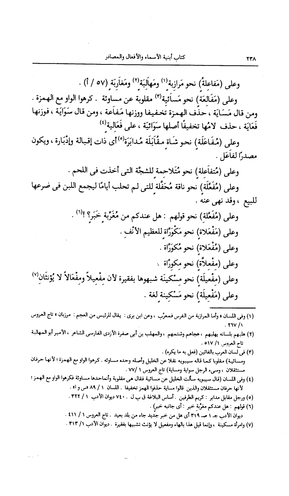 وعلى (مفاعلة) نحو مرازبة ومهالبة ومغاربة (57/أ)